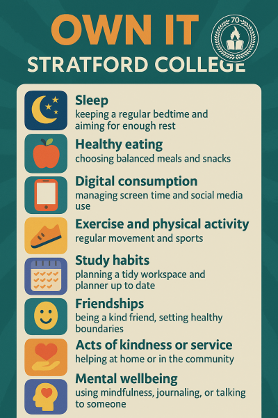At Stratford College, we believe every student has the power to "Own It" . This means taking responsibility for daily habits that shape wellbeing and success. Ms Finnegan explains what Stratfords's Wellbeing theme means for each of us to do.