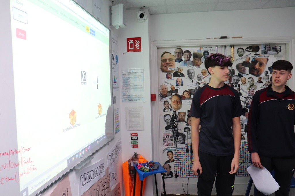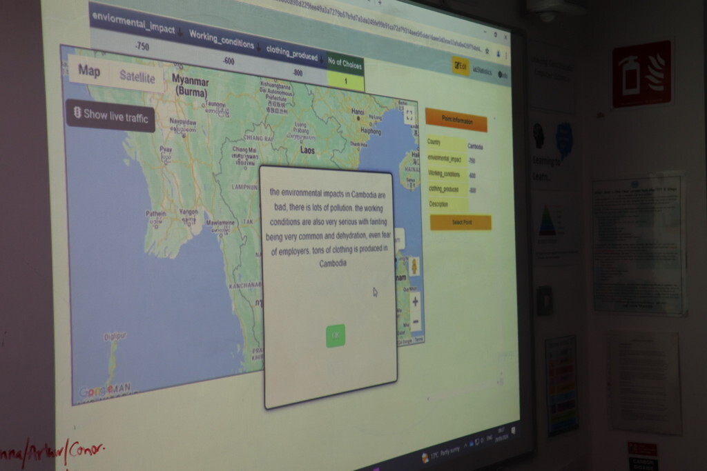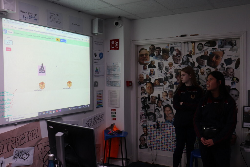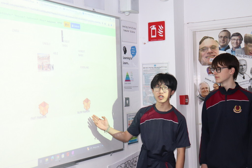 Fast Fashion is what the 3rd years have been exploring in CSPE classes this year. Doing this Design Thinking project helped students get a deeper understanding of how to use technology to change people's behaviour. After almost 7 weeks work, all the 3rd years presented their projects - one of the stages of Design Thinking to Shayla and Dr Carina Girvan.