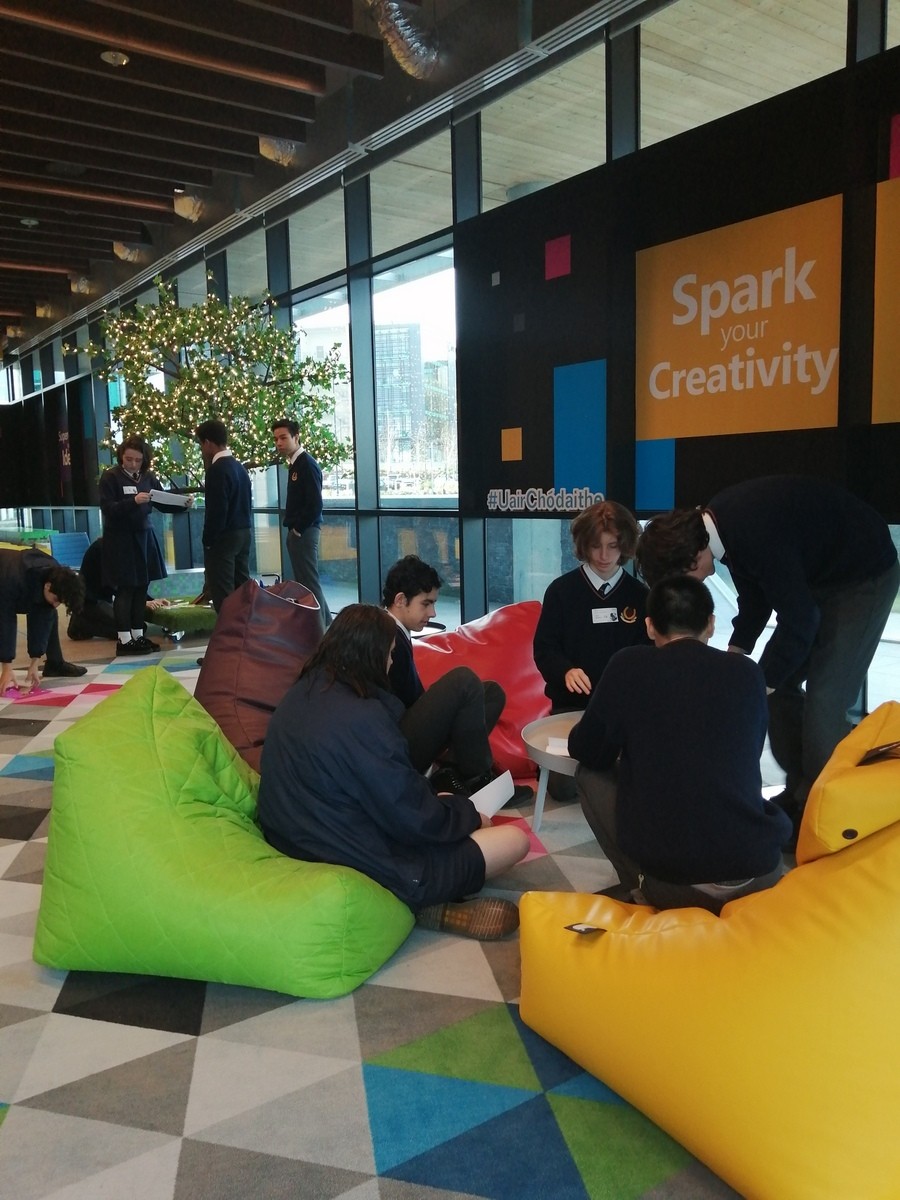 The 5th Year Computer Science class visited @Microsoft'DreamSpace on Monday, 10th February for a day of coding and problem solving. Students were split into groups and given a folder of paper materials and one marble. Each group had 40 minutes to create the longest, most creative "marble run" they could engineer!