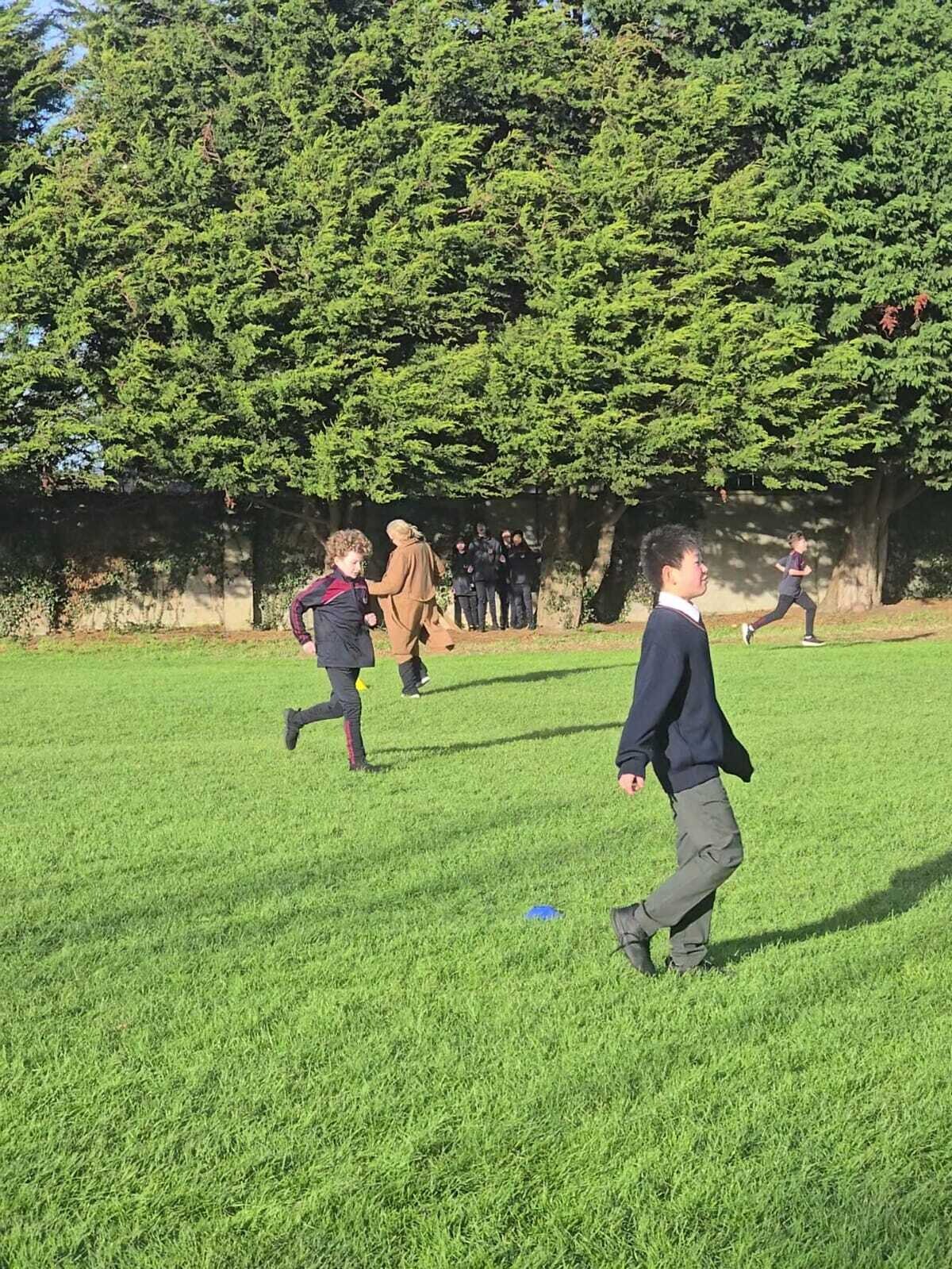 During break on the 25th November the 1st year students years had a rounders game against the teachers. The teachers batted first, and Mr. O’Callaghan was the first batter and he had a fair hit but he only got to 1st base. The rest of the teachers batted with the help of a few 3rd year students with a surprisingly good hit from our History teacher, Ms. Kenny and our Computer Studies teacher, Ms. O’Kelly.