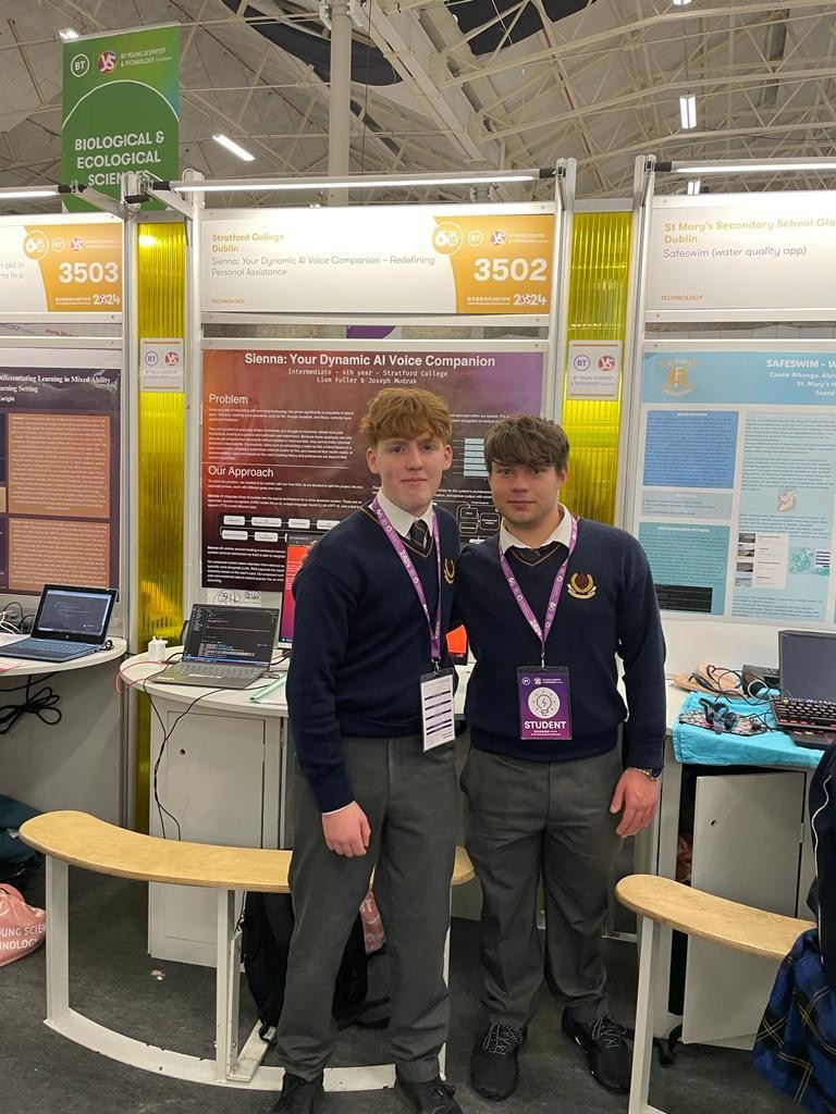 Their project - Sienna: Your dynamic AI Voice companion; Redefining Personal Assistance - won first place in the Intermediate Group Technology category and the Regeneron special award. This last award is presented to the project that the judges feel will best represent Ireland at ISEF (International Science and Engineering Fair) in California in May. So not only two wins for Liam and Joseph but a visit to the USA too!
