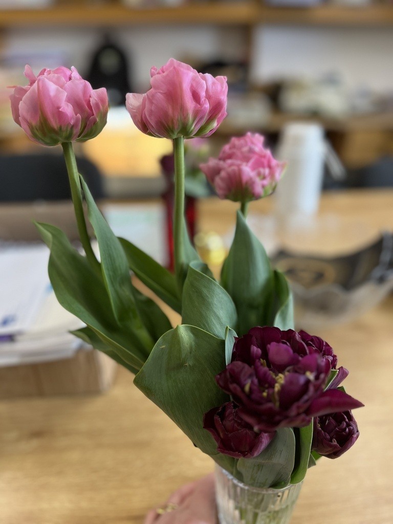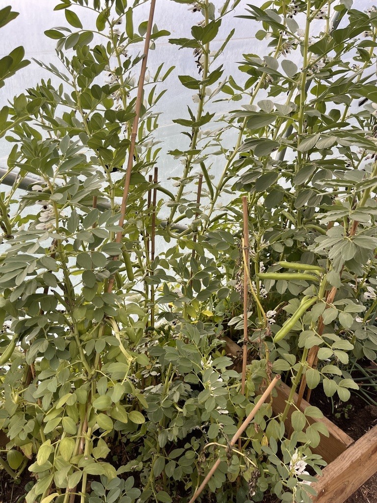 Our broadbeans are already producing as are our peas! Our fancy tulips and alliums have been decorating the school and providing food for pollinators.