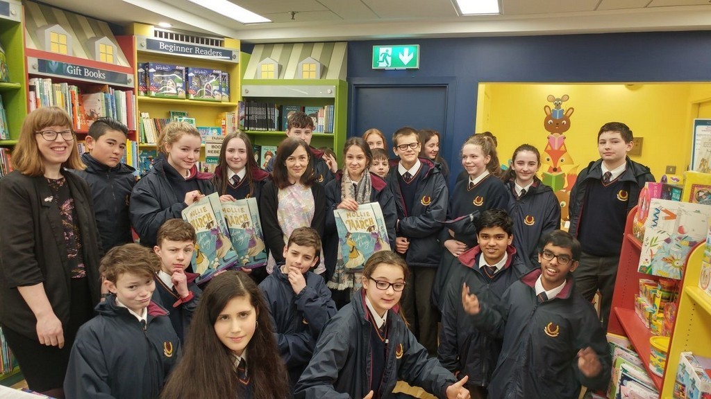 On Monday 12th of March first years were fortunate enough to visit Dubray Books in the Swan Centre, Rathmines. We were invited to meet and talk to renowned author Anna Carey. Carey is a popular author who has won the Senior Children’s book prize at the Irish Book Awards for a book written in 2011 called: ‘The Real Rebecca’. Recently she has written a book about suffragettes campaigning for women’s rights in Ireland in 1912 called: ‘Mollie on the March’.