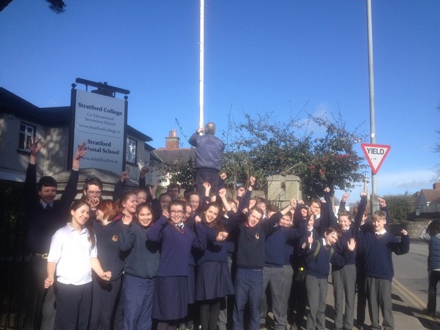 Raising the Green Flag for Stratford College Photo: Christina Greene