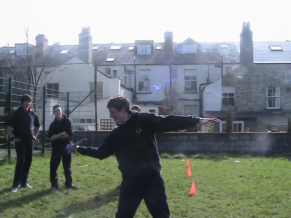 For our mini Olympics, we first took part in a sprint. The sprints consisted of us running with weights to compensate for the armour the Greeks had to wear. It started out with the boys running first, and when Ms. Finnegan shouted "Aptae!", they ran. The winner of the boy’s race was Hercules (Peader Charles). When it was the girls turn to run, Venus (Emma O’Brien) won. The two winners were given victory arrows to wear for the rest of the day.