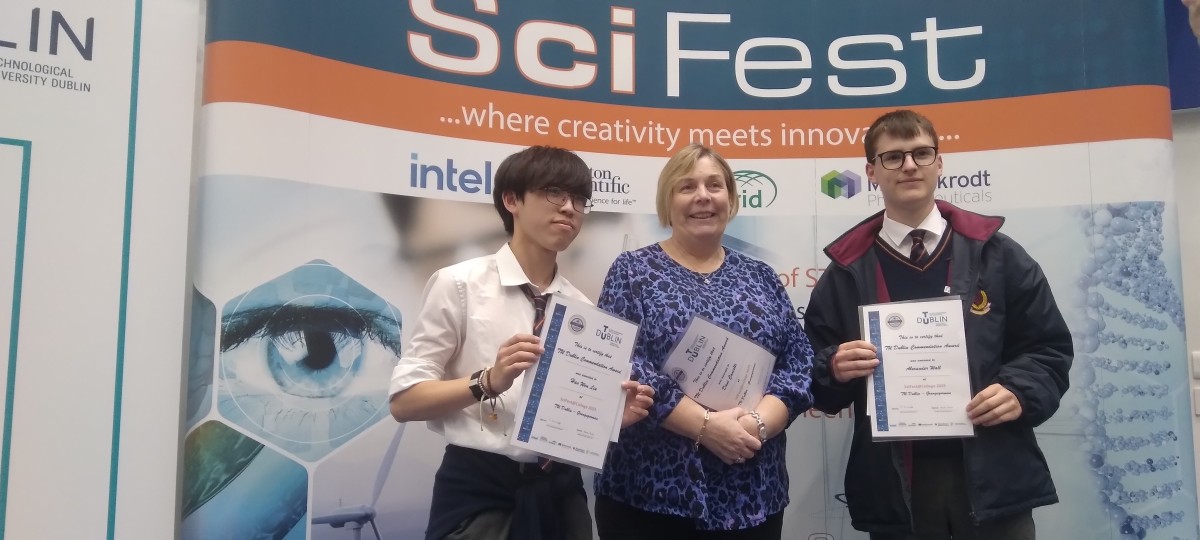 Five TY teams competed in the SciFest@College competition in TUD Grangegorman on Friday, 2nd May. They presented their projects to a number of TUD lecturers. Congratulations to Alexander, Davi and Hao Wen who won a "highly commended" award for their 'Save the world' project! Congratulations to Paddy who won the SciFest quiz on the day!