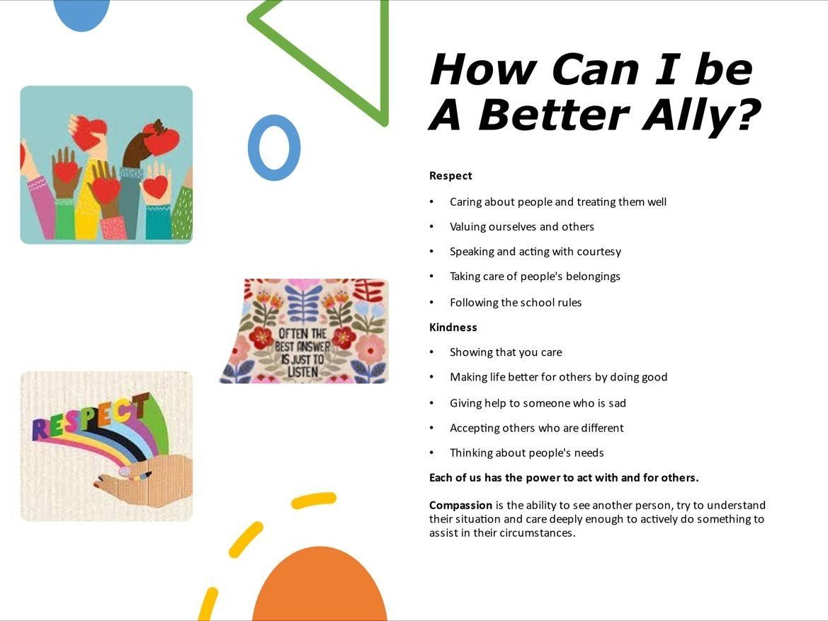 At our whole school assembly on Monday 4th December, our Principal Patricia Gordon and Deputy Principal, Delia Donohoe talked about allyship and how we can be better allies to each other in our community and in our classroom.